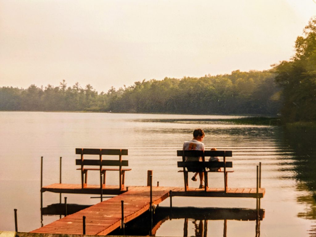 The cottage was fronted by a simple deck, shaded only by towering white pines; the adults would sit out there and talk, watching us kids play in the water down below. Grandpa always cleared out the lilies and reeds in the spring, leaving a large swath of clear water for swimming. I’d wade into the cold water slowly, watching the minnows dart around my legs in rippled strips of sunlight. We kids would spend the better part of an afternoon down by the water on a warm day, alternating between the water and laying out on the warm dock.